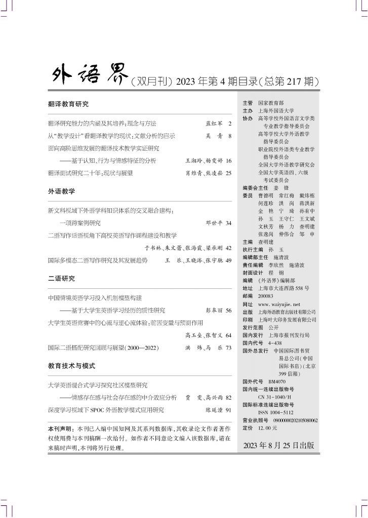 首页 / 期刊 / 外语界(双月刊) / 2023年 / 外语界2023-4